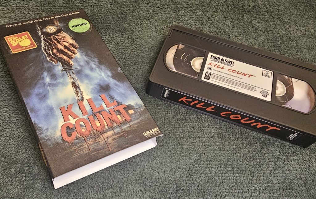 What struck us right away was how small but detailed it all is. This thing is absolutely dinky, but all the practical and design elements are there. The face borrows from the cassette tape styling of the Retro Mixtape series, but obviously now it’s a VHS tape. You get the reels, you get the little warnings to not touch the tape and to put it in the right way – exactly as you got them back when VHS was a popular format. A ‘VHS’ logo, an ‘R’ rating and, of course, the Farr + Swit and Kill Count logos complete the design.