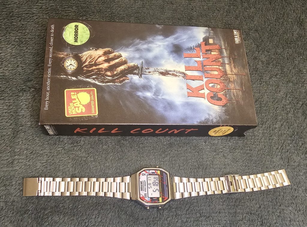 The Kill Count is clearly inspired by ’80s horror films, especially the slasher flicks that we all somehow watched despite being like ten years old at the time. The name is very apropos for this reviewer. As a slightly odd kid, I used to know all the kill counts for the Friday the 13th films and this watch, with its name and whole styling, makes me think of Friday the 13th Part Six: Jason Lives. The makers say it’s more generally inspired by all slasher films. The Fridays for sure, but also things like Halloween. For us, it’s the watch you want to be wearing when you accidentally bring Jason Vorhees back to life in graveyard for no apparent reason.
