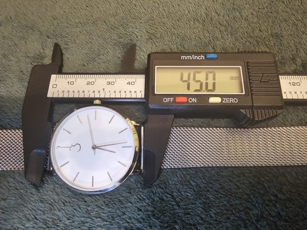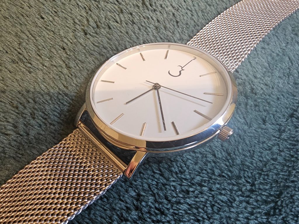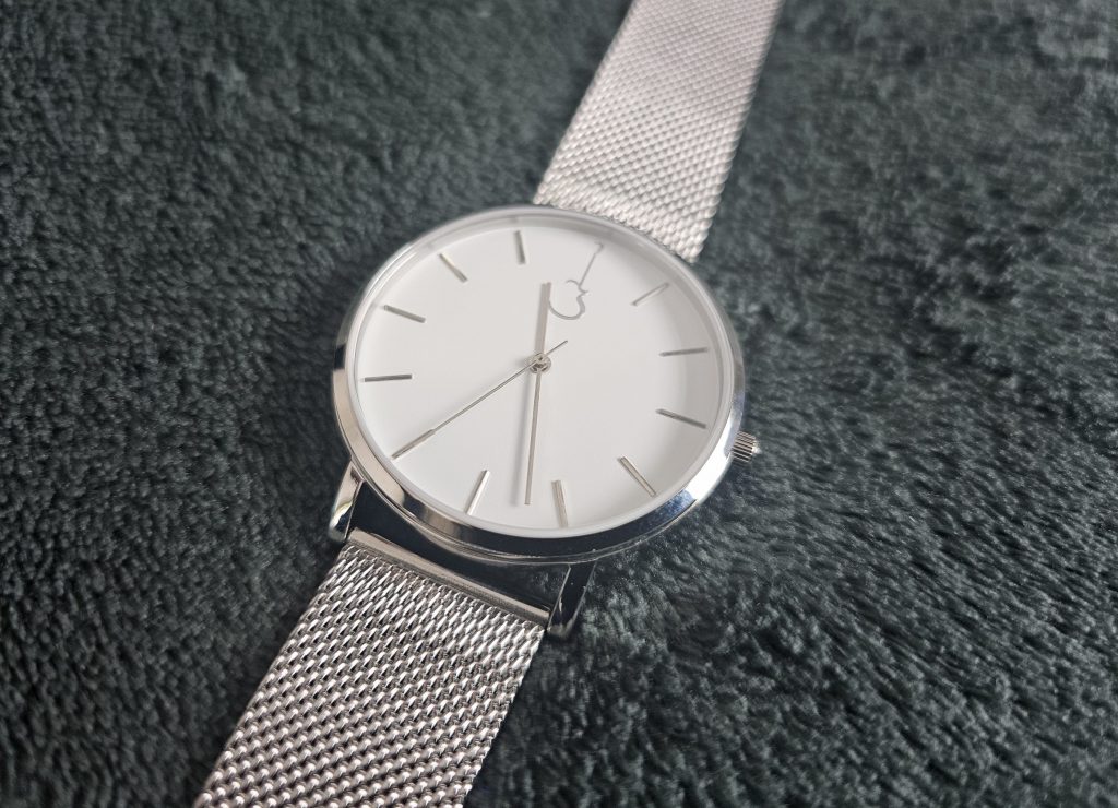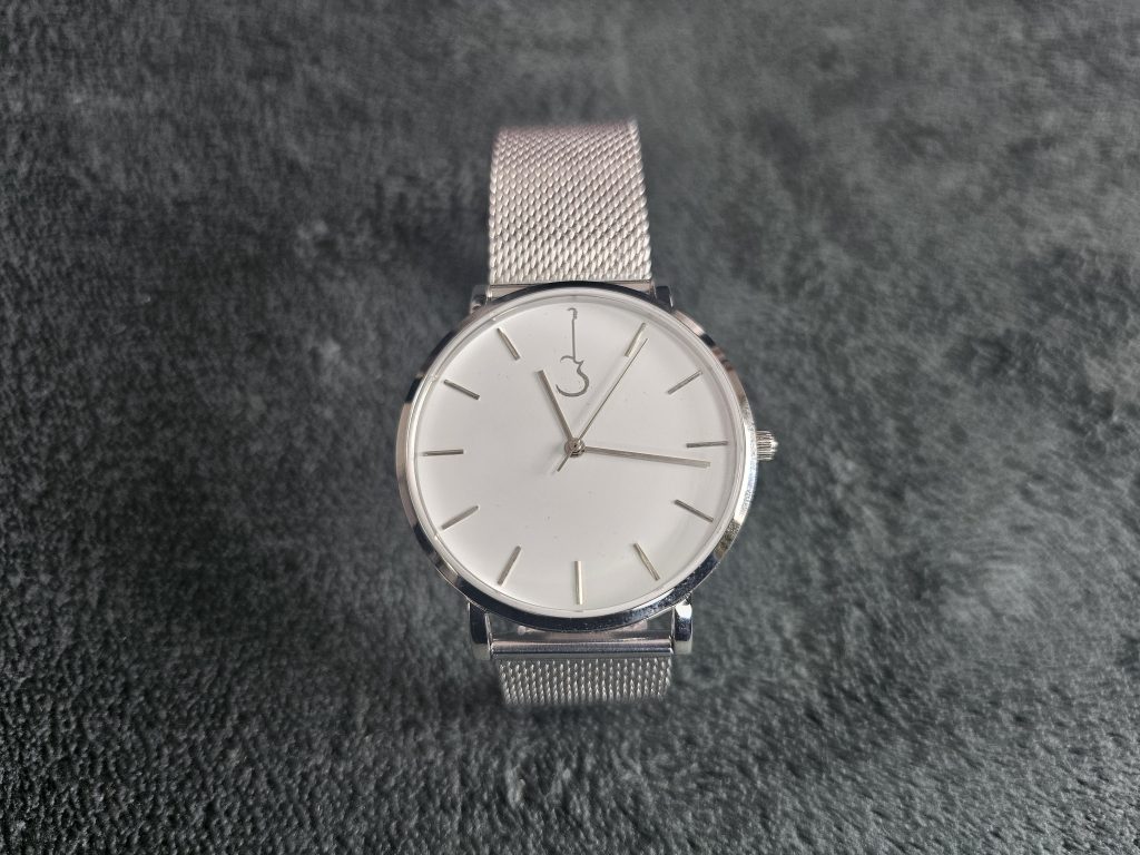Matching the other indices, with the same sleek and silvery polish, are the hands, stretching pointers like a T-1000 that’s trying to accuse you of stealing its lunch from the Cyberdyne office fridge. And that’s it. No brand name, no model reference, no pointless text telling you how deep you can dive into the water with it, no brags about where the movement is from. But still functional with decent legibility despite those stick-thin markers.